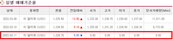 서울외환중개 3/8~3/11 USD 일별 매매기준