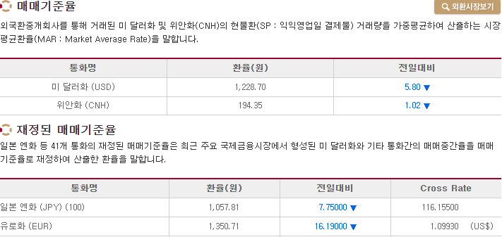 오늘 환율 오늘 달러, 유로 모두 하락했네요.