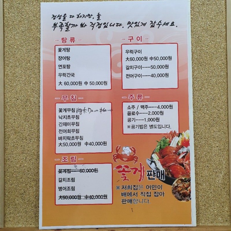 우리는 꽃게무침 중 사이즈 주문할래.